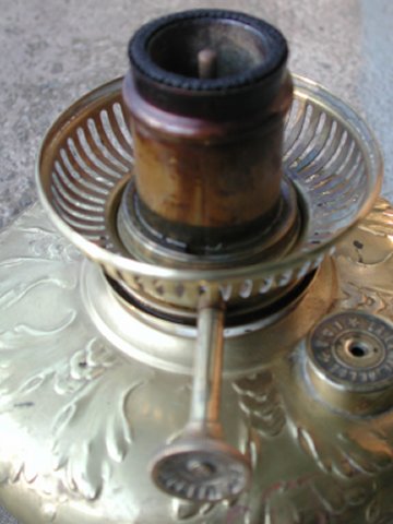1883 20''' Center Draft lamp. Note wick winder is