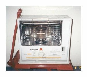 holding a Corona SX-2E radiant heater. This